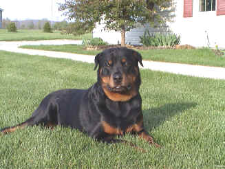 We have been showing and breeding dogs since 1970.  Our first breed was Irish Setters, followed by English Springer Spaniels.  We stayed with the Sporting breed until 1994 when our last English Springer Spaniel died.  After all those years of grooming, we wanted a "wash 'n wear" breed, so we bought our first Rottweiler in 1995 since Rottweilers seemed to be an all purpose dog.  We currently show our Rottweilers in conformation, backpack, cart, work in obedience and agility, and even hunt with them!
