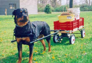 Ebenehaus Living It Up, CGC "Brandy" was born 3-25-95.  We had fun in the show ring until her accident.  When her show career was cut short, we started working in obedience.  That led to carting and backpacking. She is friendly to everyone and all animals. Brandy is number one in the pecking order!  And, she keeps all the other dogs in line.