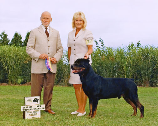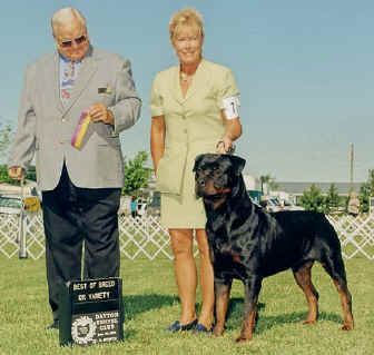 Nash was out of Katie's first litter of seven (3-22-2002). At 5 months of age, Nash took a puppy group 1 in Canada. Nash consistently won or placed in his class at AKC shows until he finished his championship at two years old. Owner handled for all his shows, Nash is a multi Best of Breed winner and a Best In Specialty Show winner. Nash finished his Canadian Championship in just three weekends. People love his temperament! And Nash loves attention from everyone. Nash has the following health certificates: hips, elbows, heart and eyes. He is registered with the Orthopedic Foundation of Animals with CHICK# 17587. Nash is available at stud to bitches of merit.