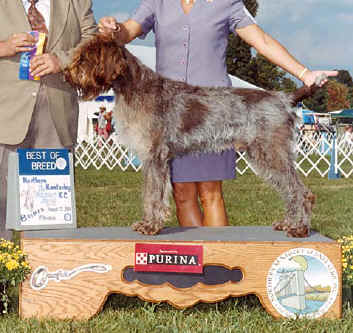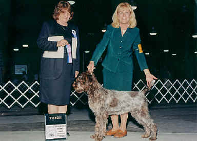 Ted E going Best of Winners and Best of Breed at 1 year old in Lexington, KY, August, 2004.